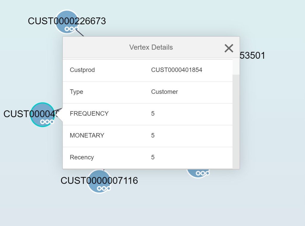 Cada uno de los nodos tiene una serie de atributos o características que lo describen, en nuestro ejemplo los clientes están clasificados con una segmentación RFM.
