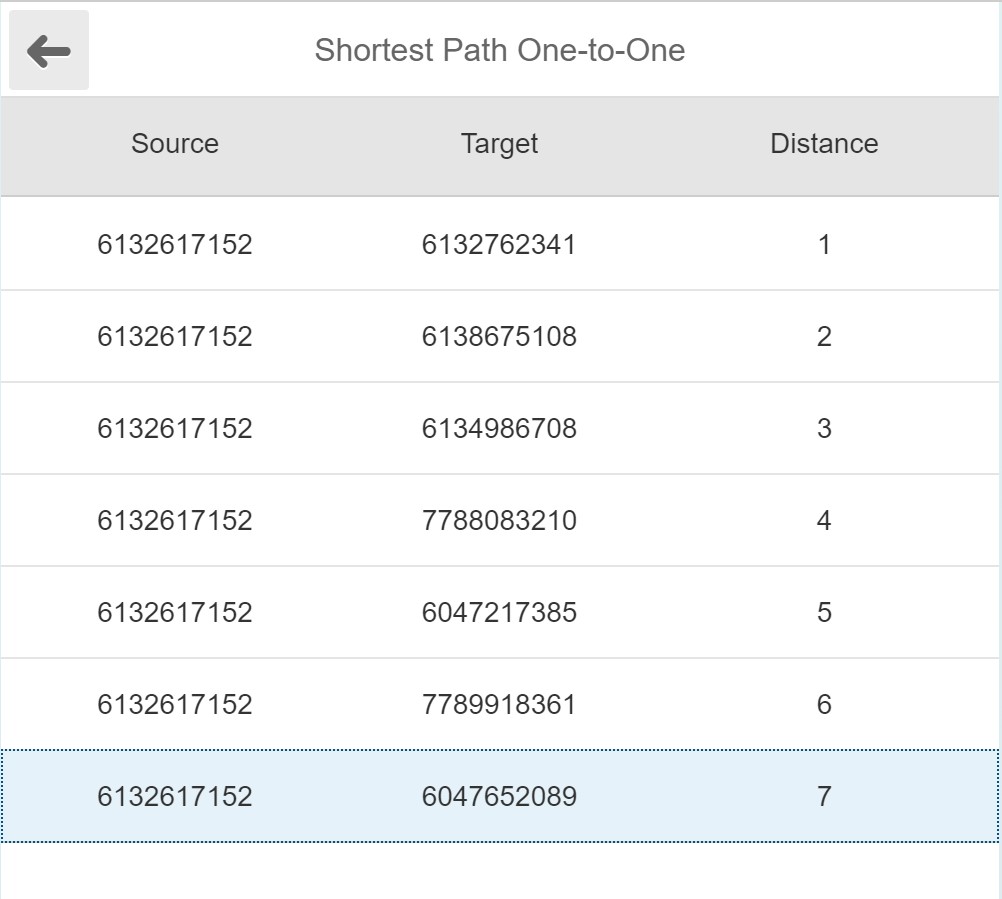 El resultado indica que hay 7 niveles de profundidad para alcanzar el nodo destino, el output del algoritmo es el camino por cada uno de ellos hasta llegar al destino.