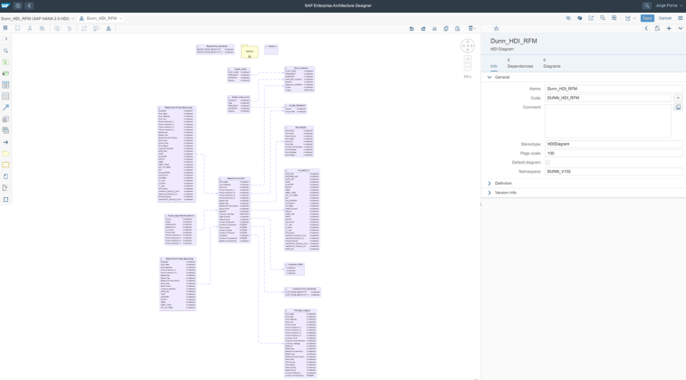 Para crear el modelo de datos lógico, nos hemos decantado por la funcionalidad de Hana Modelling, creando un conjunto de vistas calculadas (calculation views) que nos ha permitido crear un modelo de datos virtual donde relacionamos las tablas, generamos KPI’s y semántica al vuelo en tiempo de ejecución.
