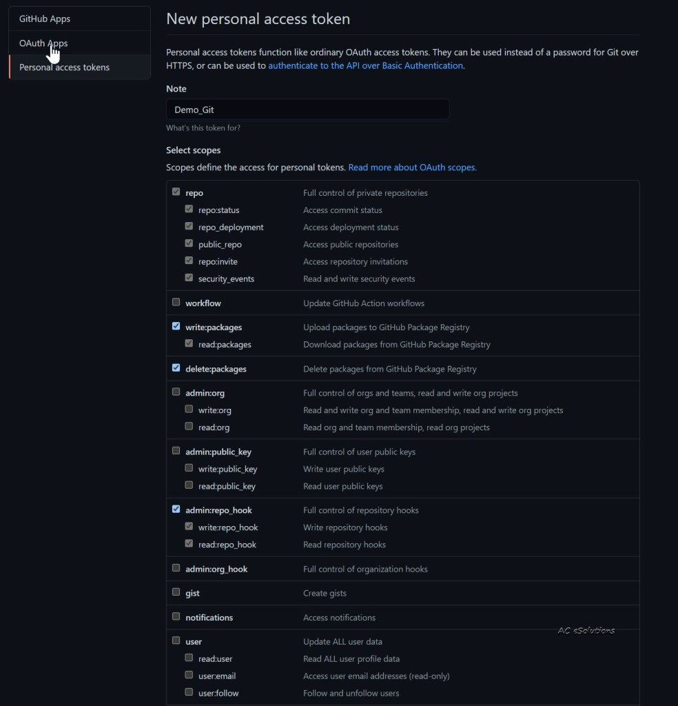 Durante la generación del token de acceso debemos seleccionar los permisos qué le vamos a dar a nuestra aplicación.