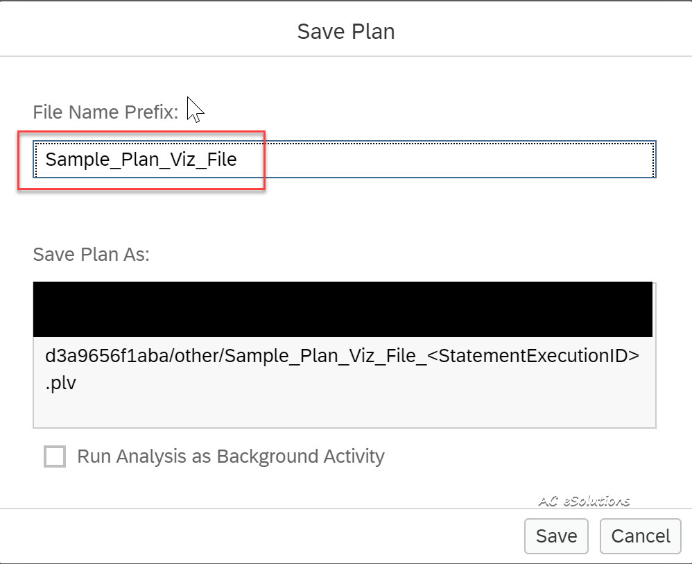 Lo primero que tenemos que hacer es obtener el fichero con el Plan de SQL, en nuestro ejemplo lo obtendremos empleando una instancia de Hana Cloud y desde la consola ejecutaremos una sentencia de SQL, lo que nos permitirá descargar el fichero con el plan.