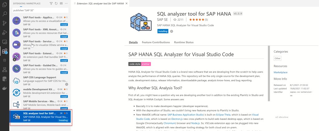 Podéis encontrar información adicional en Help.sap.com SAP Hana SQL Analyzer Visual Studio Code