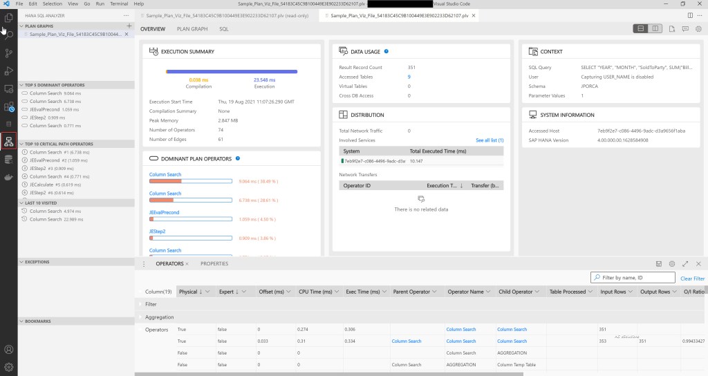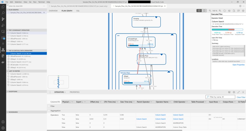 Ahora ya podemos abrir el fichero que hemos descargado desde Hana y analizarlo con la extensión SQL Aanalyzer de Visual Studio Code.